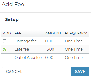 Your employee role must have the Opt-Out of Charges permission to add fees, and the Allow Modify Agreement Rate permission to edit and remove fees.