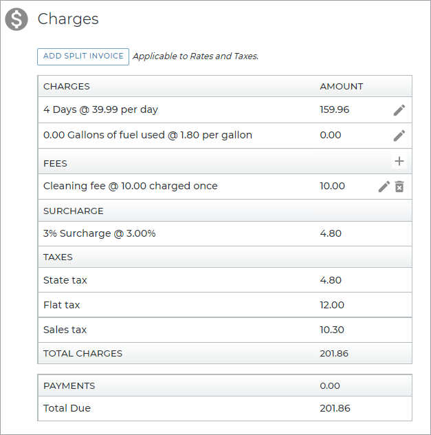 You can edit a rate, fuel charge, or mileage charge amount when creating an appointment, or when opening or closing an agreement. You cannot edit rates or charges after a payment is processed, for locations with Credit Card and Payment Processing, or after the agreement is closed.