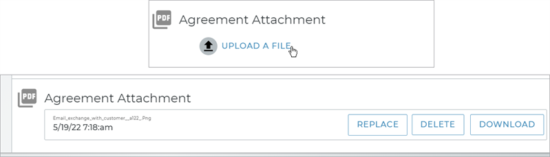 After your attachment is uploaded, you can replace the file, DELETE it from the agreement, or DOWNLOAD it.