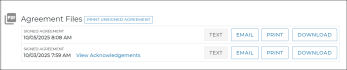 This final version is available for texting, emailing, printing, or downloading within the Agreement Files section of the closed agreement, along with the previously existing signed form.