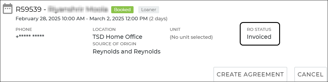In the Repair Details section of appointments and agreements, you can enter a Repair Order (RO) number to track repairs on the customer's vehicle.
