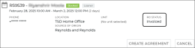 If you have selected a date range, the agreement receives the status of Unit Pending; otherwise, it receives the status of Incomplete. Either way, you can search for and continue the agreement using the Unit Pending status filters on the Agreement Hub. See "Search for an agreement".