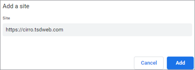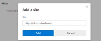 - Next to Allow, click Add. Enter https://cirro.tsdweb.com and click Add to finish.