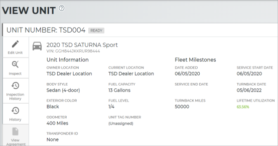 You can use the Fleet Hub to add or remove units, view and edit unit information (including changing a unit's location or status), view a unit's history.