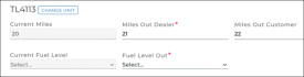 2. Confirm returning unit fuel / battery and mileage. For collections, your location may support separate mileage tracking at the customer's destination and at your location (e.g., Miles In Customer and Miles In Dealer ).