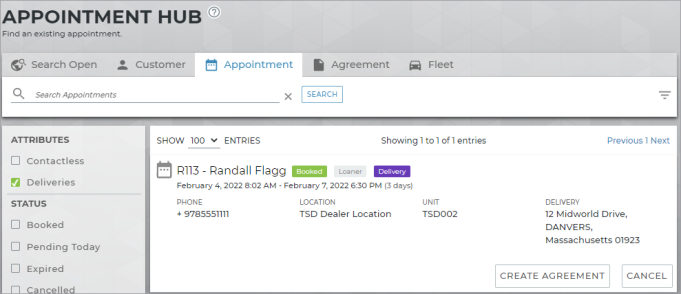 - On the web: Access the Appointment Operations Dashboard to view a snapshot of appointments due for delivery today (based on Checkout Date) and open agreements due for collection today (based on Collection Date). and the Appointment Hub and Agreements Hub search filters on the Home page.