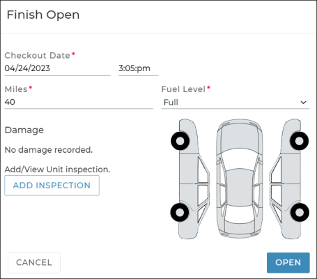 - Record Odometer, Fuel: Enter the unit's Miles In and Fuel Level In, so the agreement has the latest information for the returning unit.