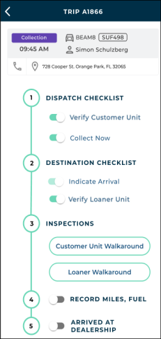 - Use the Trip Checklist to toggle through each step of the trip. Each item can only be toggled on once.