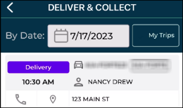 - On the mobile app: Just tap the Deliveries and Collections count on your 'Home' screen dashboard to view agreements with a Delivery Date (for deliveries) or Collection Date (for collections) of today. You can also tap Delivery & Collect from the sidebar menu to view today's deliveries and collections.