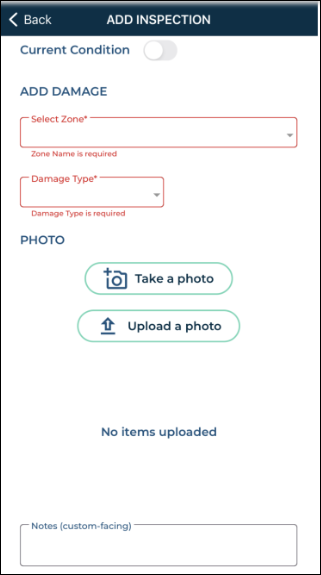 This feature is only available for locations with the Enable Customer Automobile Inspections setting turned on within Delivery and Collection setup.