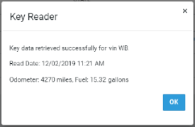 - The Key Reader is read for the unit. If key data is read successfully, a message is displayed with the VIN and current date and time as the Read Date. Click .