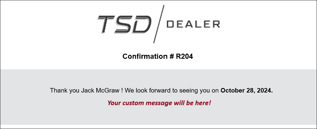 - Appointment Confirmation: Sent when an appointment is booked, including through a web scheduler. (If you edit a Booked appointment, or revert an Expired appointment into a Booked appointment by changing the dates, a confirmation text or email is not sent to the customer.)