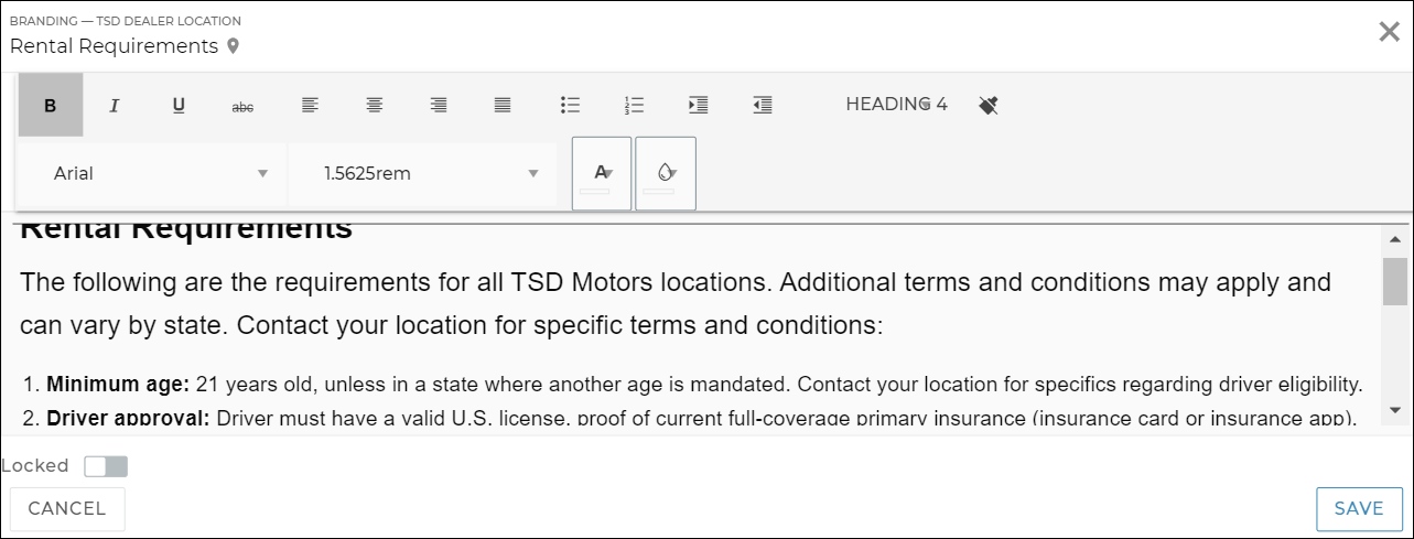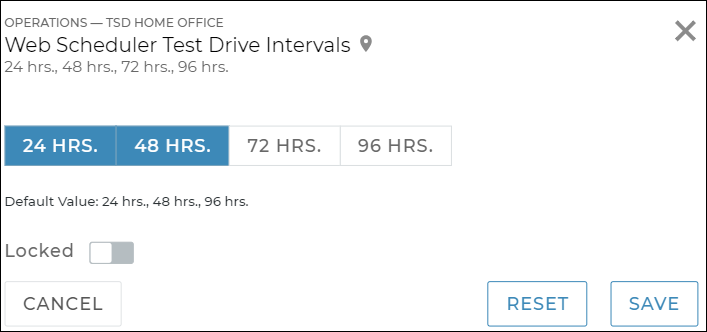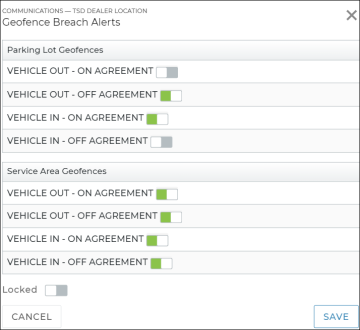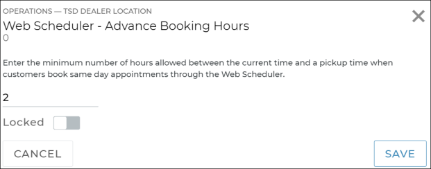 - (Optional.) At the dealer level, to prevent a setting from being edited by a location, select the Locked indicator (