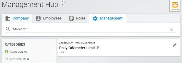 Categories search filters are available on the Management Hub for you to locate specific types of settings, such as agreement-related settings. For example, select the General category to view privacy and security settings, return policies, and more.