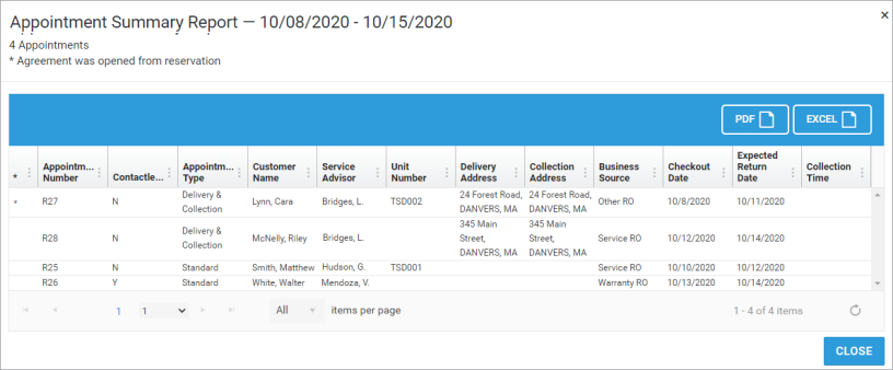 Run the Appointment Summary report to view a list of all appointments that were scheduled to be picked up at your location in a given date range.