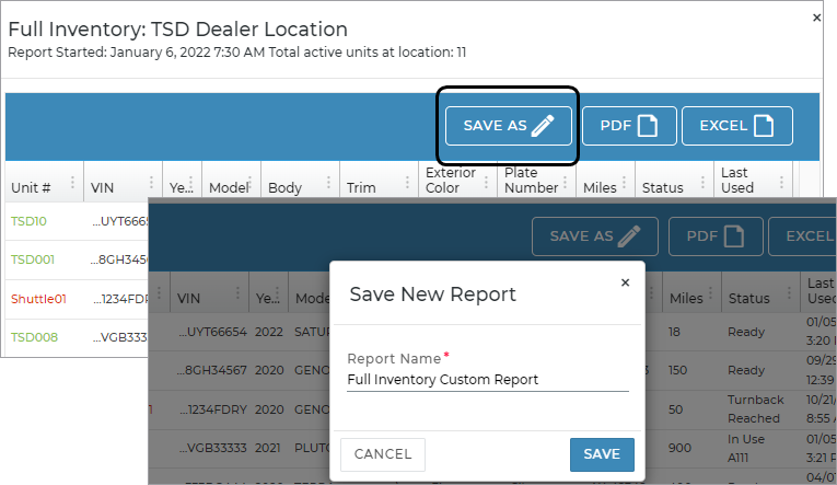 Depending on your employee role, you may be able to save a customized version of the ATMS GEN2.0 Full Inventory Report under a new name.