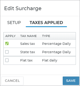 8. Set up surcharges that apply to rate charges using the Surcharge setting, if needed. Apply taxes to the surcharge, as applicable.