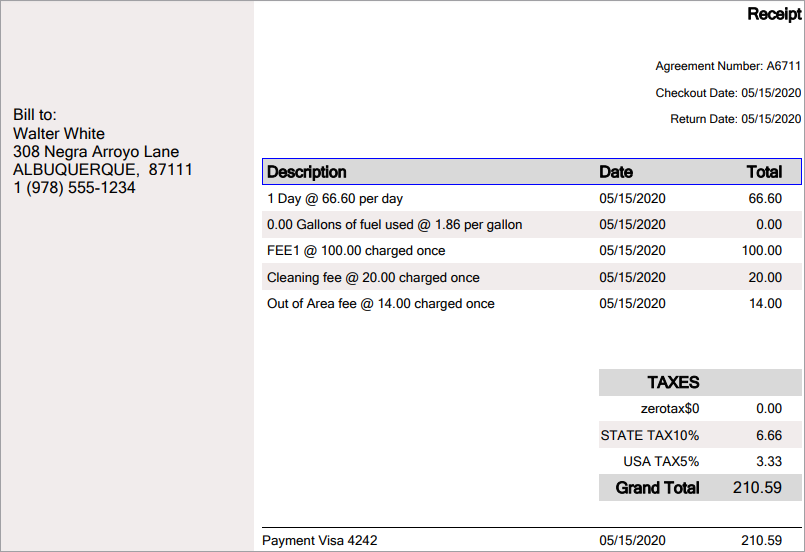 With integrated Credit Card Processing, a customer's credit card can be added to an appointment or agreement, so your location can easily bill for agreement charges, such as rates, fuel, mileage, taxes, etc., and/or toll charges, depending on your integration.