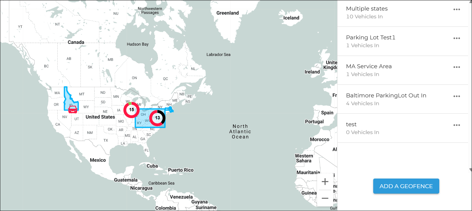 • The Geofences map is a live, interactive view of your geographic virtual boundaries, or fences. You can create, edit, or delete geofences.