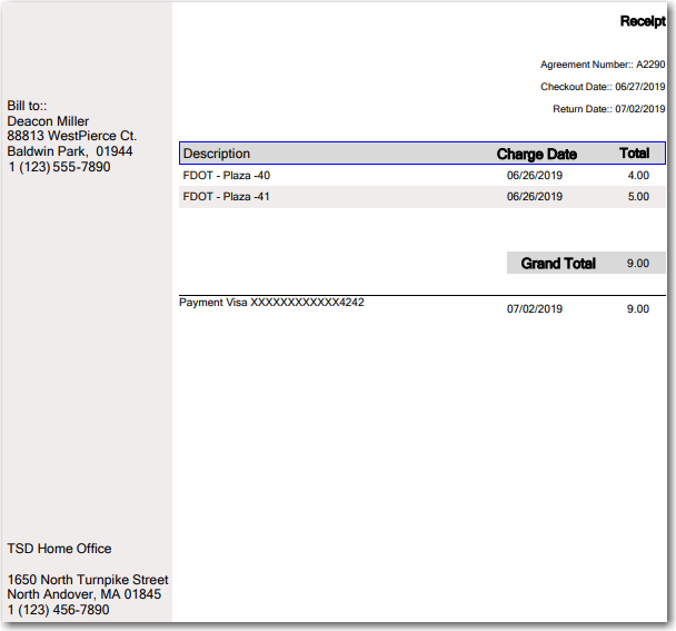 5. If you chose to bill the customer for tolls, it may take up to ten (10) days after the agreement is closed to automatically charge the customer's credit card for tolls. The result of this transaction (e.g., a successful payment) will be displayed in the Toll Payment History available on the agreement.
