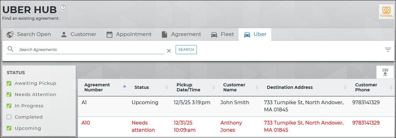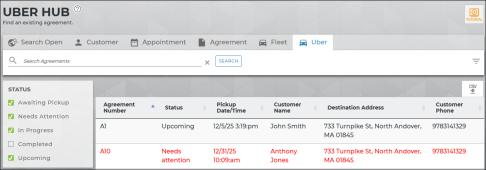 - On the Uber tab, type search criteria, such as the customer's name or Agreement Number.