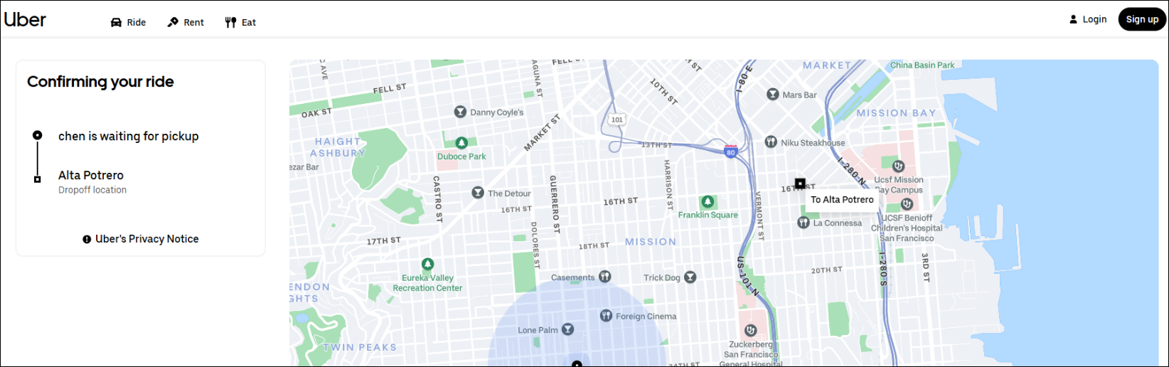 - Awaiting Pickup: The Uber driver is assigned to the trip and on the way to the pickup location.