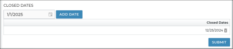 - Manage your future closed days. Use the calendar to select a future date your business is closed (e.g., 12/25/2024), and click .