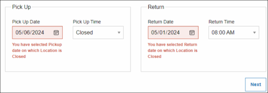 For example, if your location will be closed on 12/25/2024, you can make sure a customer booking an appointment with the scheduler cannot choose a pickup or dropoff on that date.