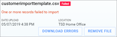 In the list of customer CSV imports, if one or more records failed to import, click to download a .csv file of errors.