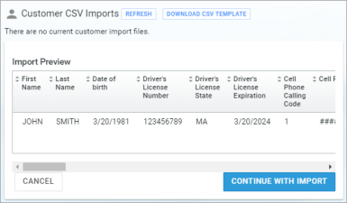 Your employee role must have the Customer CSV Imports, View Dashboard, and Operations permissions to use this feature. See "Roles & Permissions" for more information.