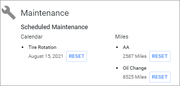 Example: An oil change is scheduled every 5,000 miles. Unit 123 is returned from an agreement with 5,200 miles, so the unit is now flagged for maintenance. Once the oil change is complete and you no longer require an alert to be displayed, reset the maintenance interval until the next 5,000 miles (so, when the unit reached 10,200 miles).