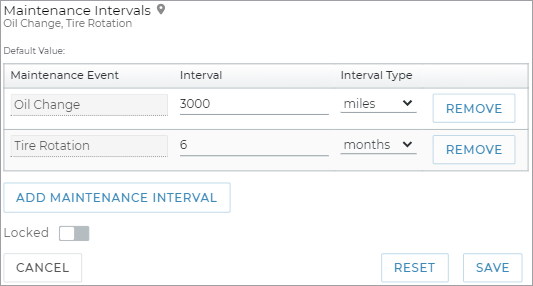 You may want all units in your fleet to have an oil change every 3,000 miles, or to be inspected every 12 months. In this case, use the Maintenance Intervals management setting to schedule maintenance intervals so that you can be alerted when a unit reaches a set interval and needs maintenance.