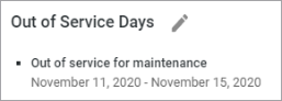 - Under the Maintenance section, scheduled Out of Service Days are displayed, if applicable. Click edit (